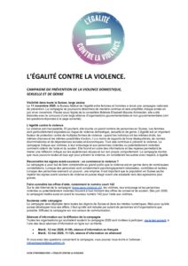 La fiche d’information explique comment la campagne « L’égalité contre la violence » a vu le jour, qui y a contribué, quels sont ses objectifs et à qui elle s’adresse.