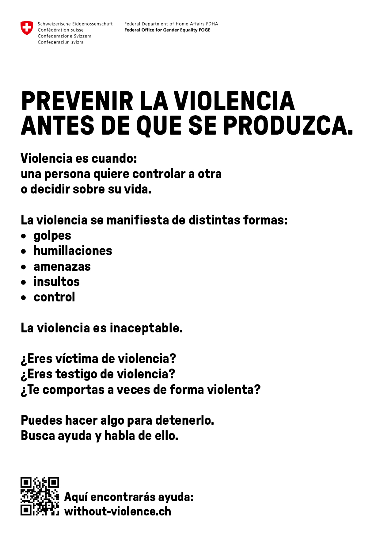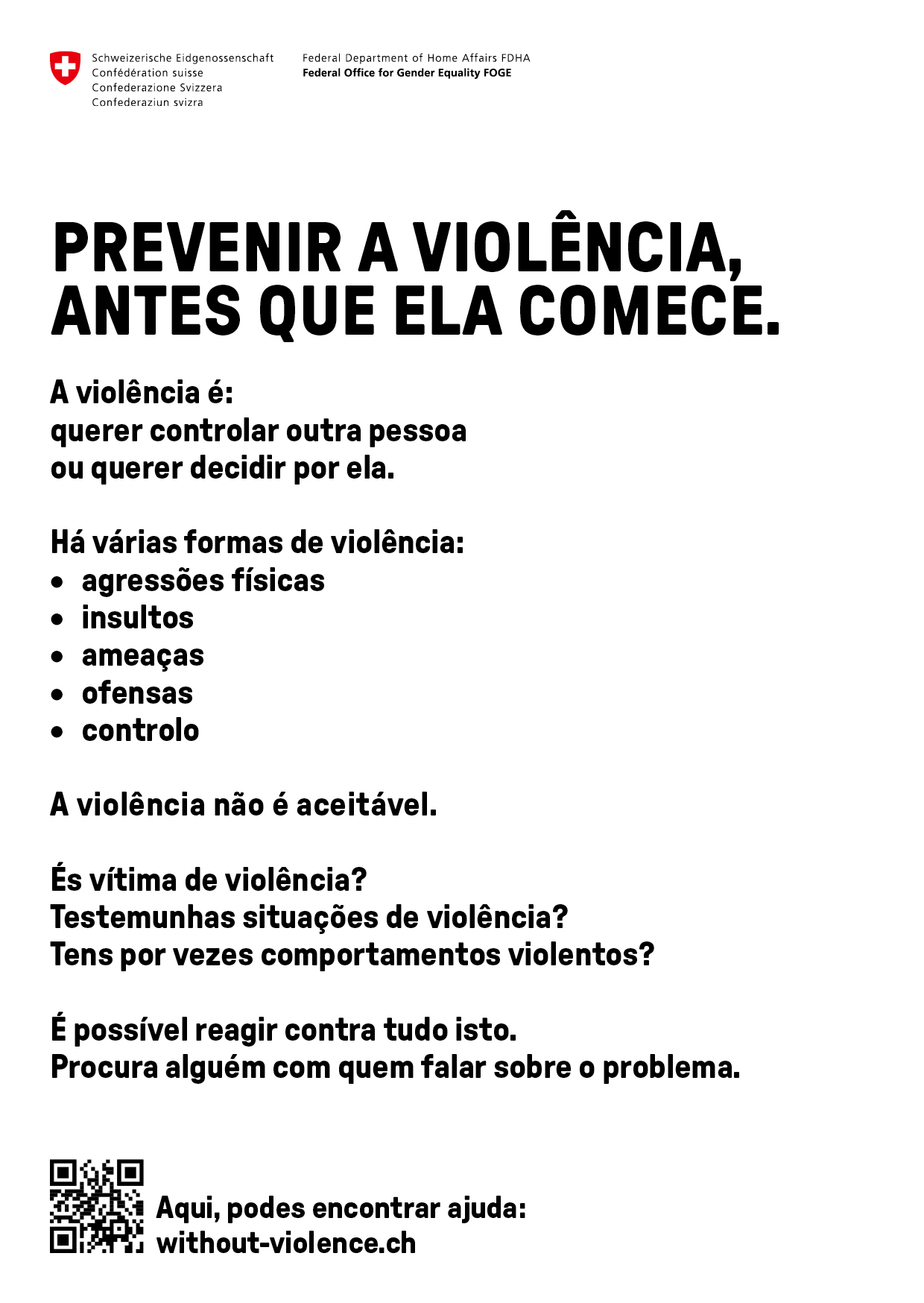 Ce dépliant au format A6 est disponible dans les langues étrangères les plus parlées en Suisse : espagnol, portugais et albanais. D’autres langues étrangères suivront en 2026.