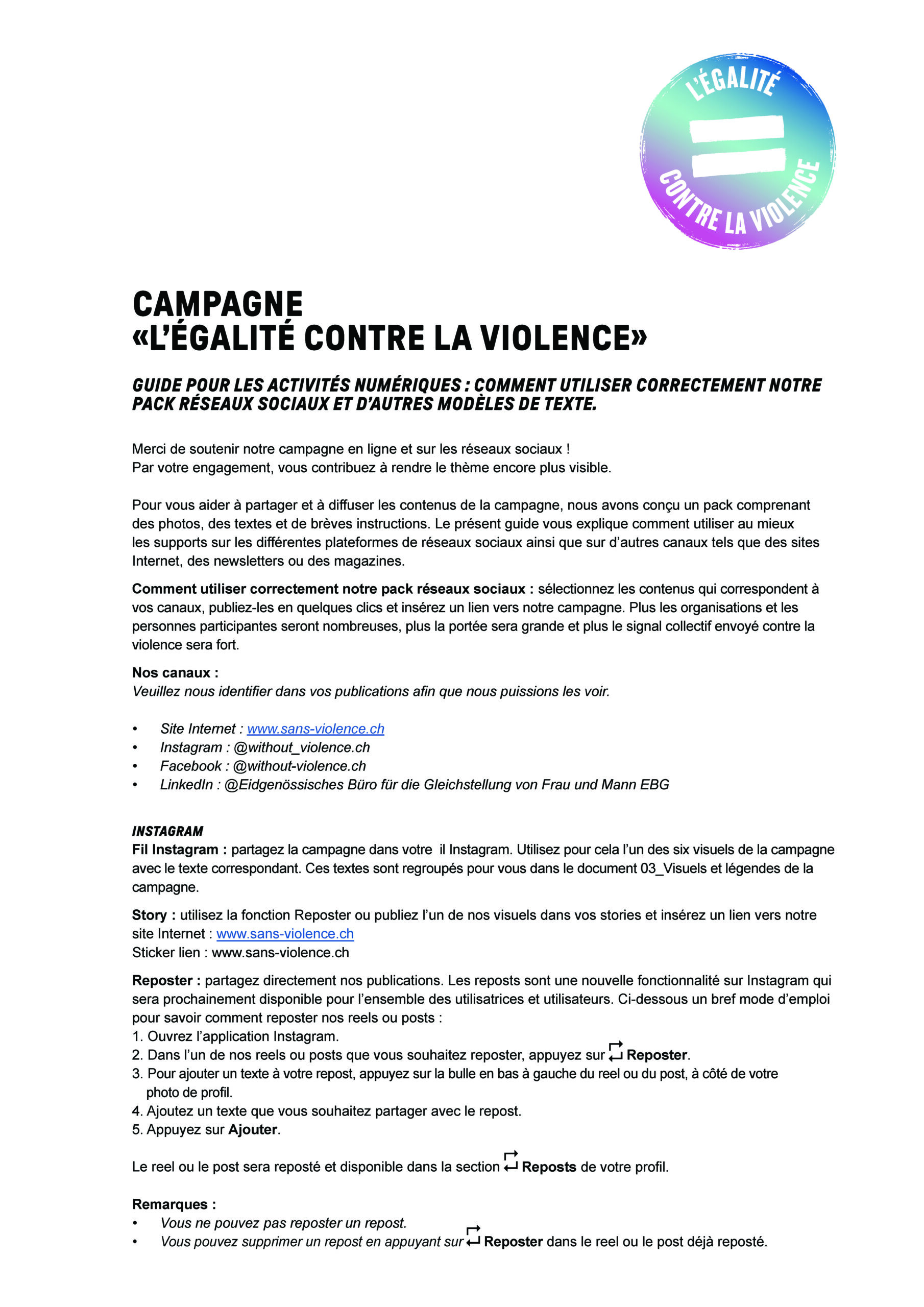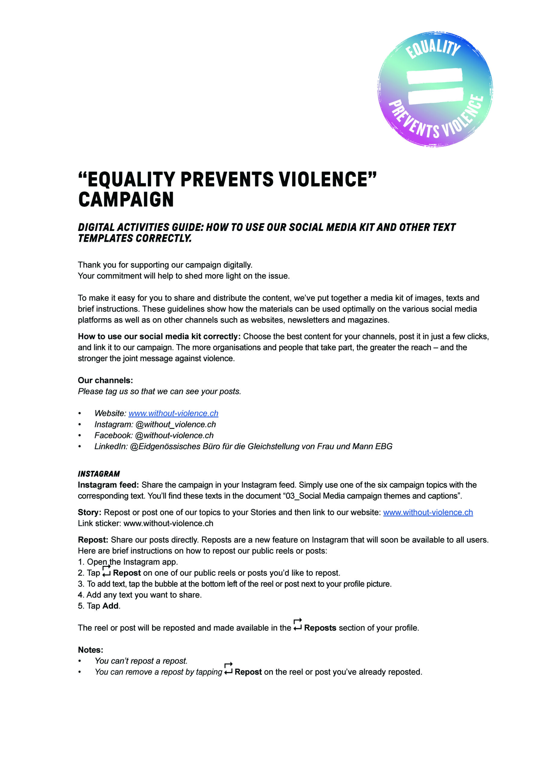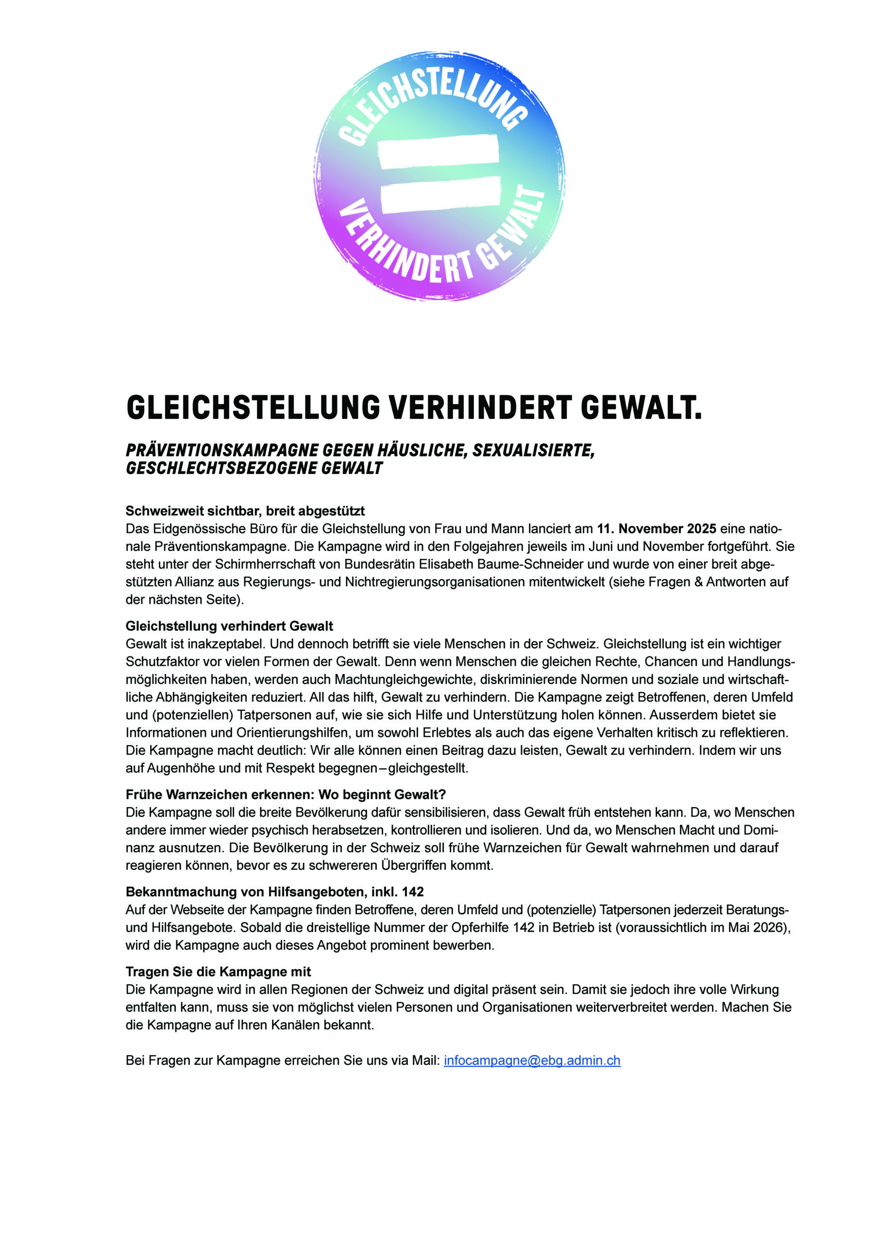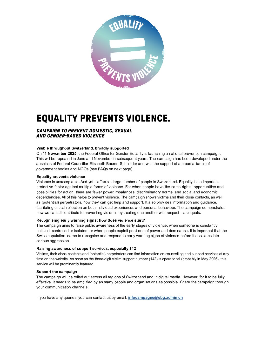 | Fiche d’information sur la campagne avec des informations de fond – Allemand | La fiche d’information explique comment la campagne « L’égalité contre la violence » a vu … | Allemand | allemand | ||