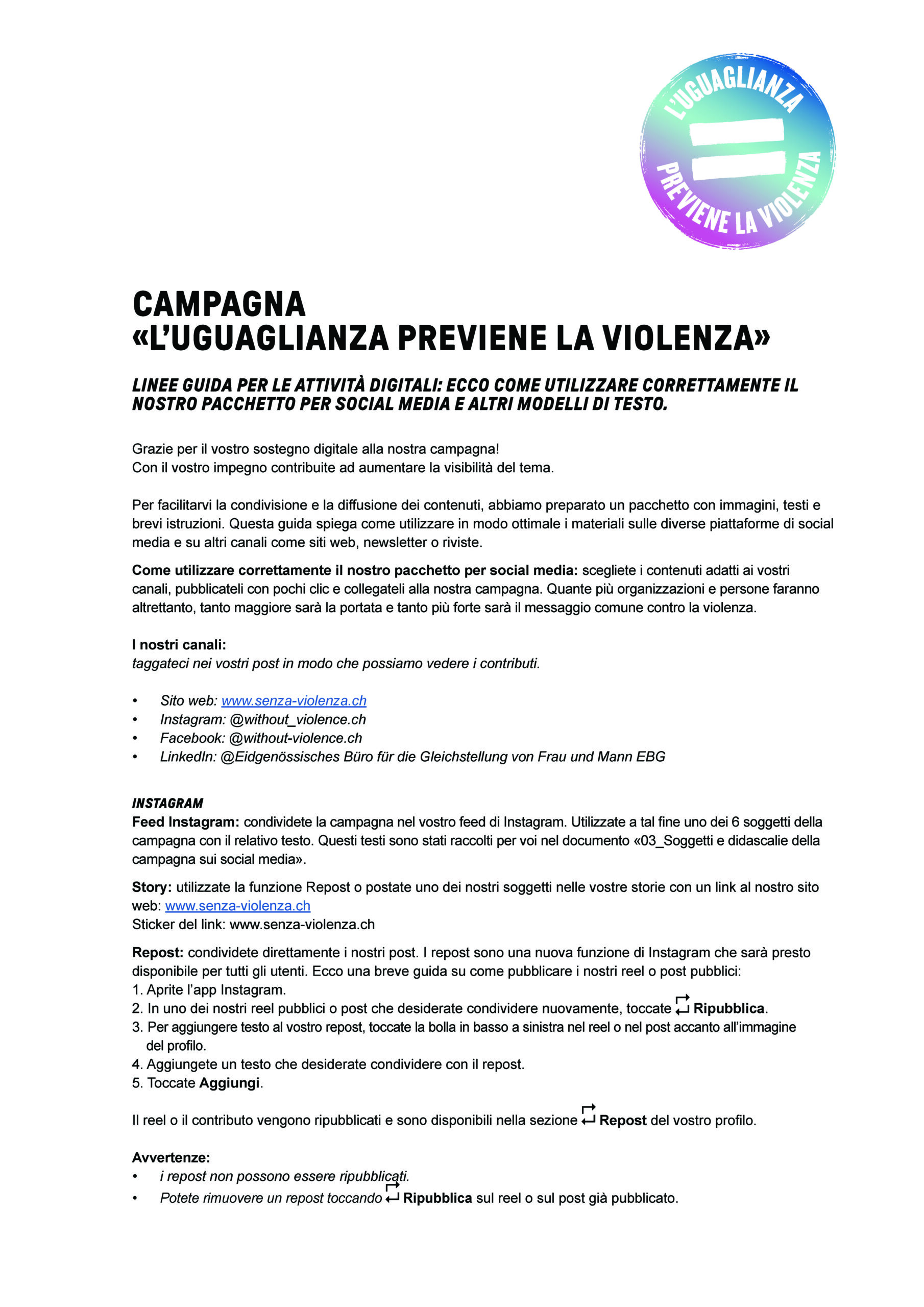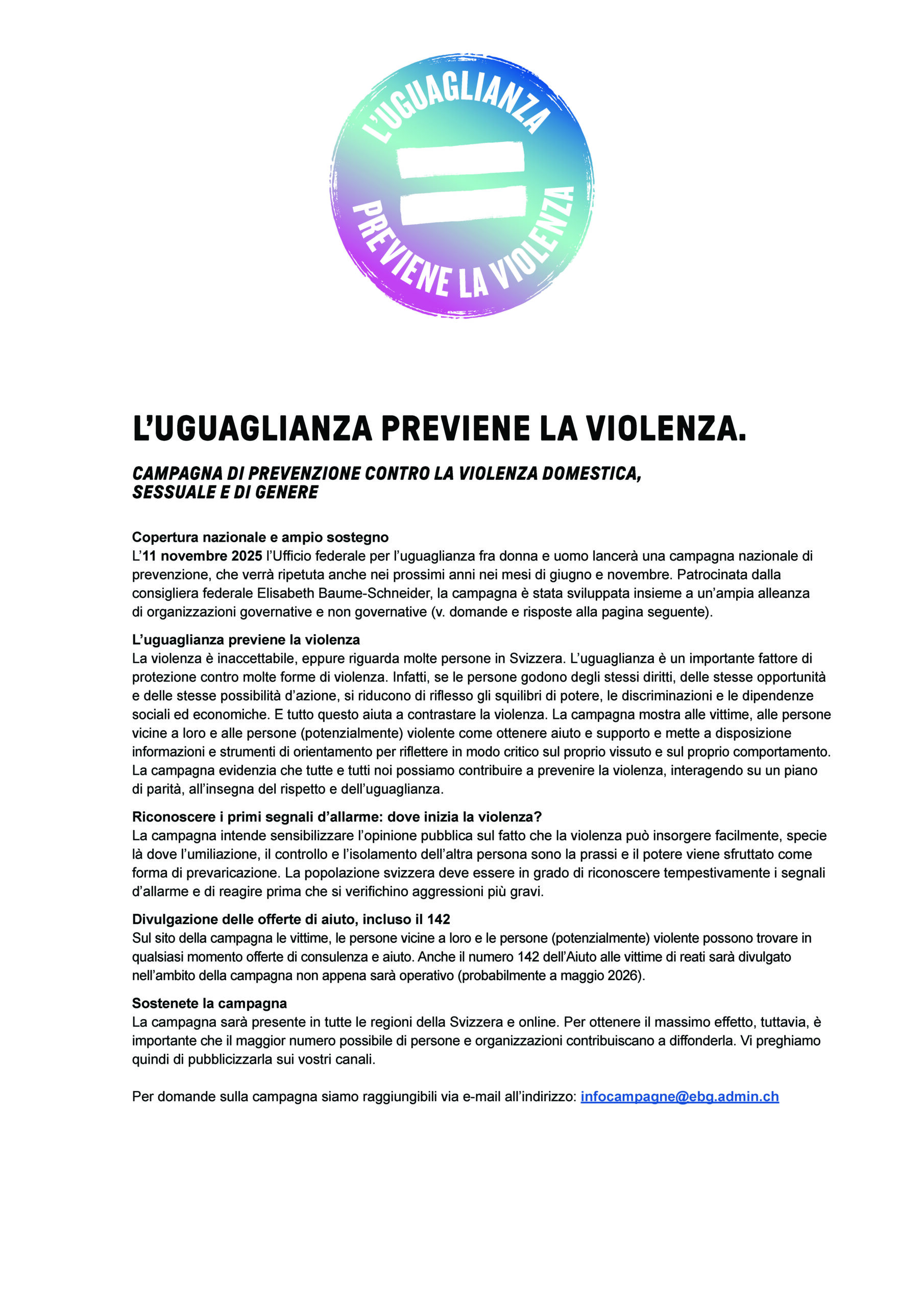 | Fiche d’information sur la campagne avec des informations de fond – Italien | La fiche d’information explique comment la campagne « L’égalité contre la violence » a vu … | Italien | italien | ||